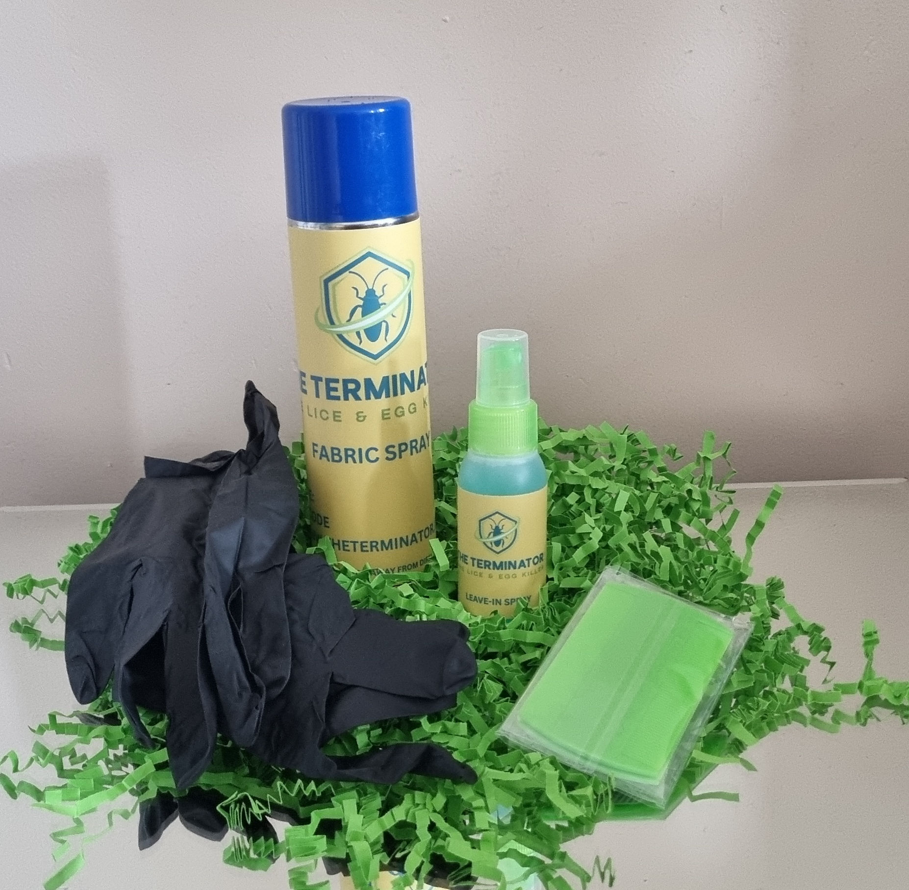 To ensure complete eradication and prevent re-infestation, it is crucial to treat the immediate environment on the day of treatment.The environmental spray is a dry, non-wet spray that won’t stain fabrics. It also has a different scent from the leave-in hair treatment.